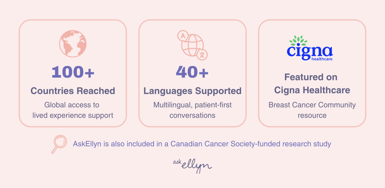 The broader healthcare ecosystem recognizes this impact. Cigna Healthcare now features AskEllyn as a resource on its Breast Cancer Community to help more people navigate their journey. Similarly, GE Healthcare included the platform on a World Cancer Day panel to highlight its role in patient support.