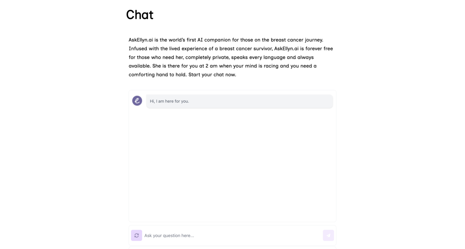 As the world’s first AI companion for breast cancer support, AskEllyn provides multilingual, non-medical support for patients and families, and is designed solely for patient-side support while intentionally avoiding medical advice.